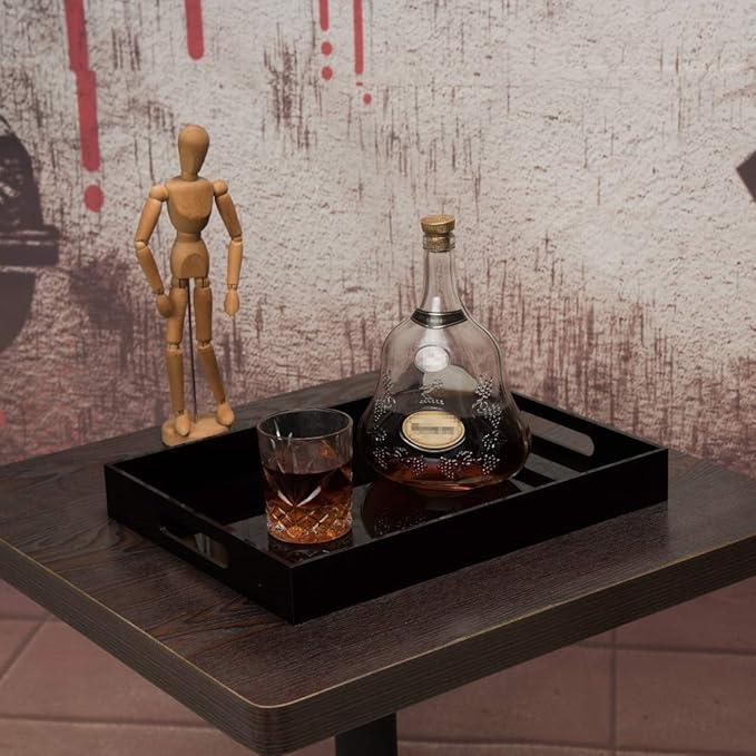 Glossy Black Sturdy Acrylic Serving Tray with Handles-12x16Inch-Serving Coffee,Appetizer,Breakfast,Butler-Kitchen Countertop Tray-Makeup Drawer Organizer-Vanity Table,Ottoman Trays-DecorativeTray