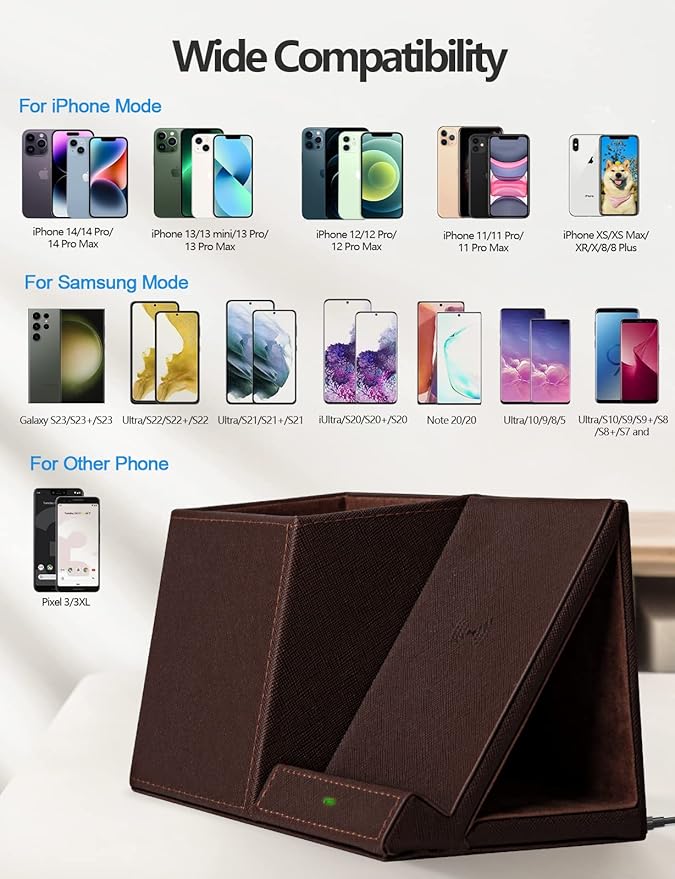 - Multi-Functional Pen Holder: This desk organizer designed with pencil holder and wireless charging station for pens, pencils, makeup brush, scissors, phone and more. Not only can organize your desk accessories, but also fast charge your phone wirelessly