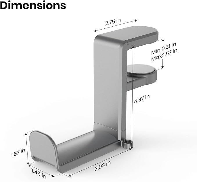 - 【Clamp-on Headphone Stand】The E-Hold Series headphone holder fits desks from 0.31 inch to 1.57 inch thick, making it a versatile choice for most setups. The spring clamp is a breeze to remove and reattach. No glue, no mess. It blends seamlessly into your space, whether it's your desk, shelf, or other surface.