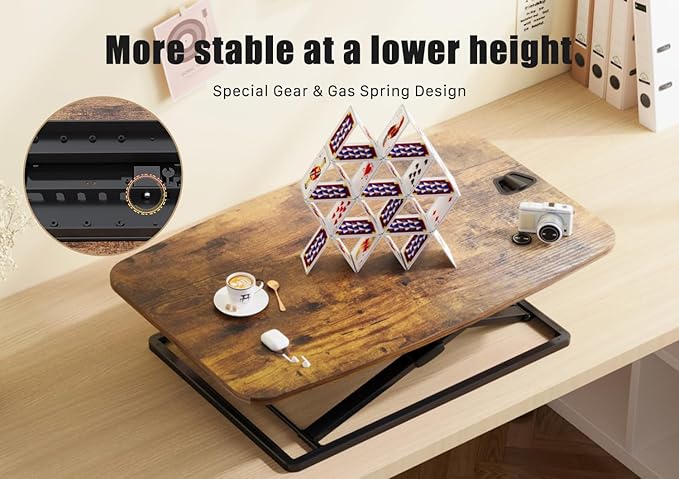 JOY worker Standing Desk Converter, 31 Inch Compact Height Adjustable Stand up Desk Riser, Ultra Low Profile Sit to Stand Table for Laptop Riser Workstation, Rustic Brown