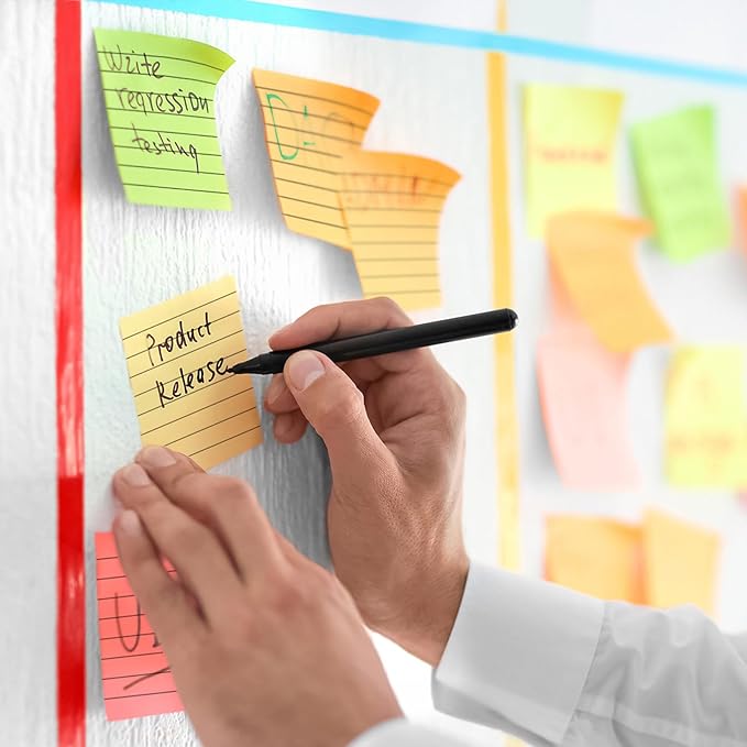 - PACKAGE INCLUDE: Comes with 48 packs lined pop up sticky notes 3x3, 8 bright assorted color, each color for 6 packs, 80 sheets/pad, 3840 sheets in total, you'll have plenty of sticky notes to last you through the year