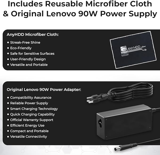 - [Package Includes] - Lenovo 40AS0090US Laptop Dock Renewed, 90W Adapter, 1x HDMI Cable, 1x Displayport Cable, 1x USB C Cable, Microfiber Cleaning Cloth