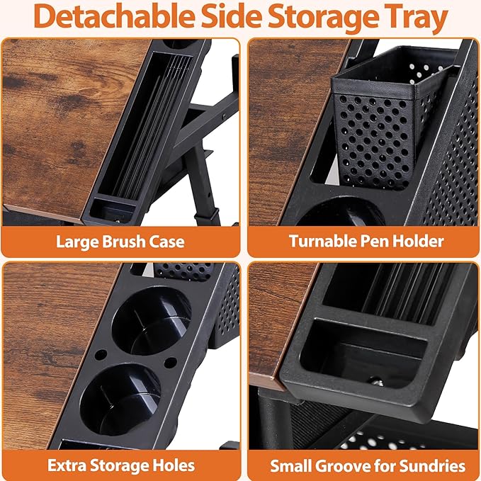 - This adjustable tabletop and height drawing desk is made of high quality MDF board with PVC, durable powder coated steel frame and non-woven drawers. The sheet stopper on lip effective prevent sheets slipping