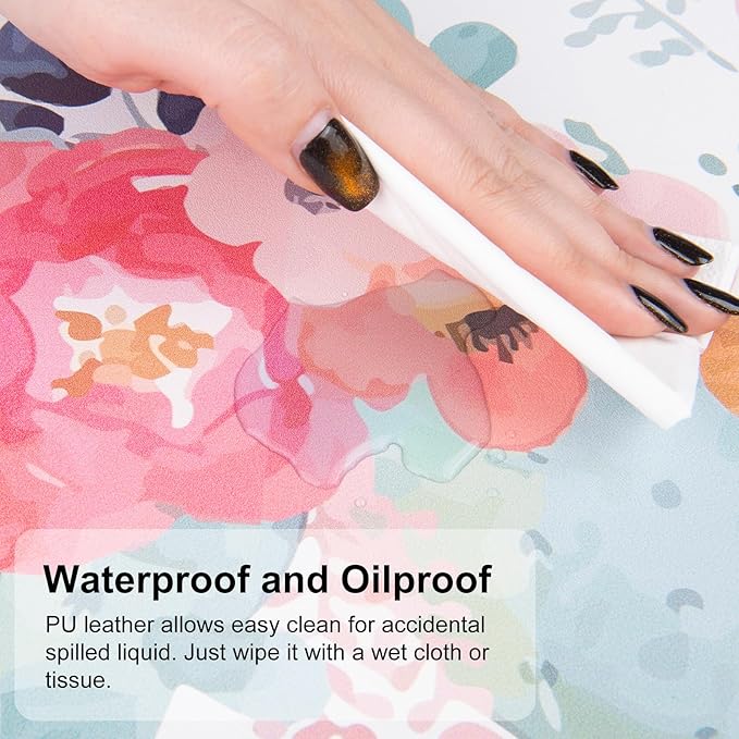 - Waterproof & Easy to Clean Desk Cover - Made of water-resistant and durable PU leather, this cute mousepad help prevent your desk from damages such as scratches, stains, spills and heat. Easy to clean, just wipe with a wet cloth or tissue.
