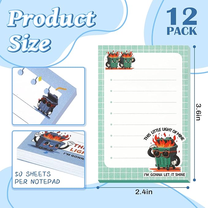- SHINE THROUGH THE CHAOS: Inspired by "This Little Light of Mine, I’m Gonna Let It Shine," these burning dumpster sticky notes add a fiery glow of resilience and humor to your workspace while keeping you organized.