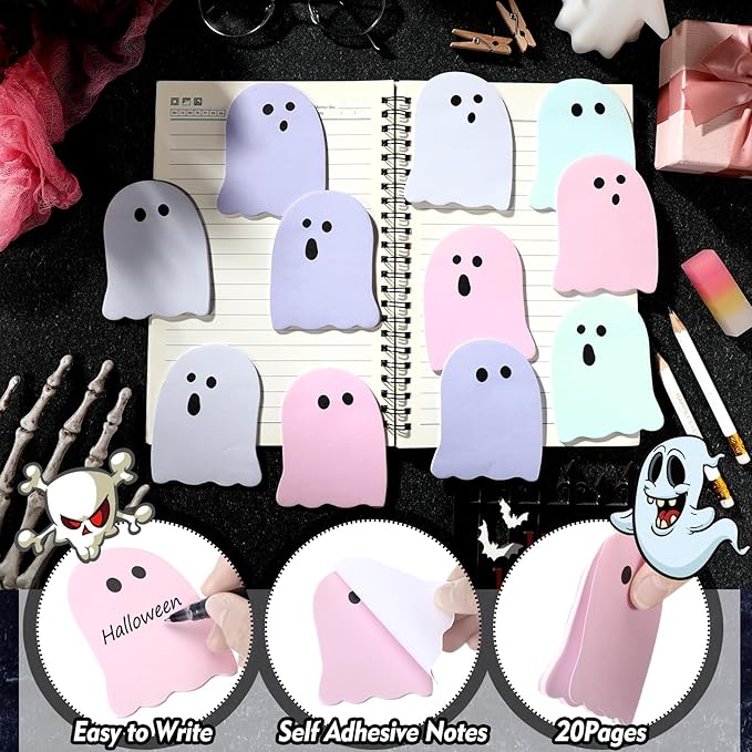 - Package Content: you will receive 1200 sheets of halloween ghost sticky notes, a total of 60 books, each book 20 sheets, sufficient quantity, a variety of styles, easily meet your daily use and replacement needs; You can also share with family and friends