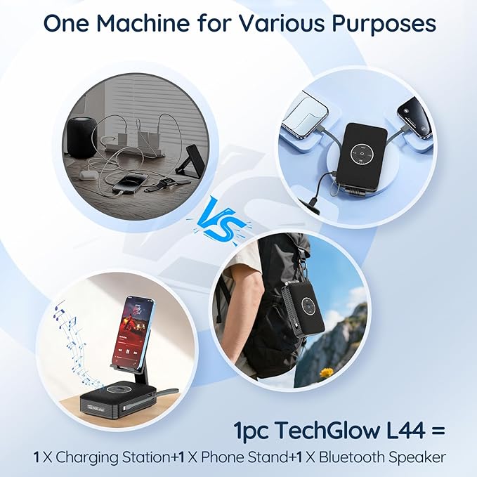 - 【3 in 1 Multifunctional Gadget】Bluetooth Speaker + Phone Stand + Charging Station with built-in charging cables.This versatile device combines wireless Bluetooth speaker, charging station and phone holder into a perfect tech gadget. It brings a lot of convenience for watching videos and making hands-free phone calls. It delivers stunning sound with enhanced bass, tight mids, and crystal clear highs without distortion at any volume