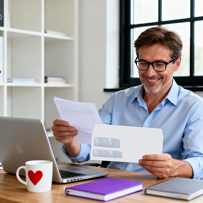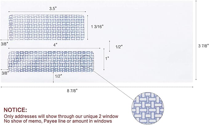 - DOUBLE WINDOW DESIGN: Only sender and return address will show on your invoices and monthly bills through our unique 2 window . No show of memo, Payee line or amount in windows. Suitable for Invoices and business billing statements.