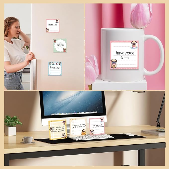 - Easy To Use: The self-adhesive backing allows you to stick these pug notes on items like desks, laptops, or fridge doors. They peel off easily for repositioning or disposal, adding flexibility to your organization