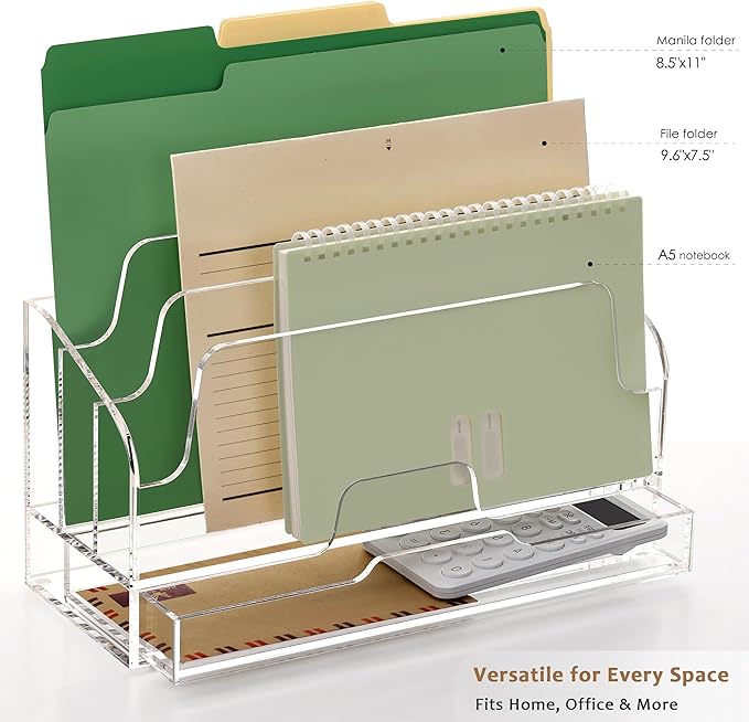 - CRYSTAL CLEAR & EASY TO FIND:Stop digging through cluttered mail piles. Our fully transparent acrylic design lets you see every document, envelope, and magazine at a glance, saving you time and frustration compared to opaque wooden organizers
