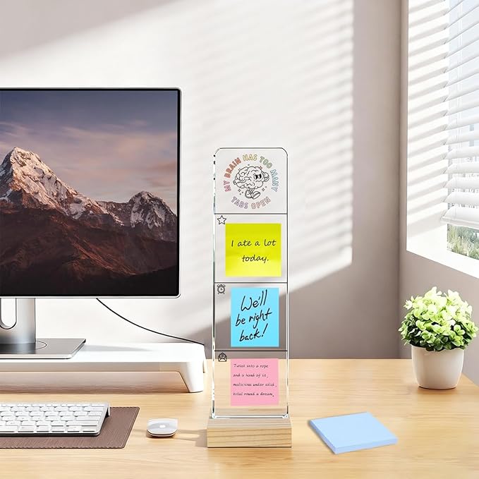 Monitor Memo Board with Removable Wooden Base Acrylic Portable Sticky Note Holder, My Brain Has Too Many Tabs Open Logo Office Desk Desk Set Sticky Notes 100 Sheets